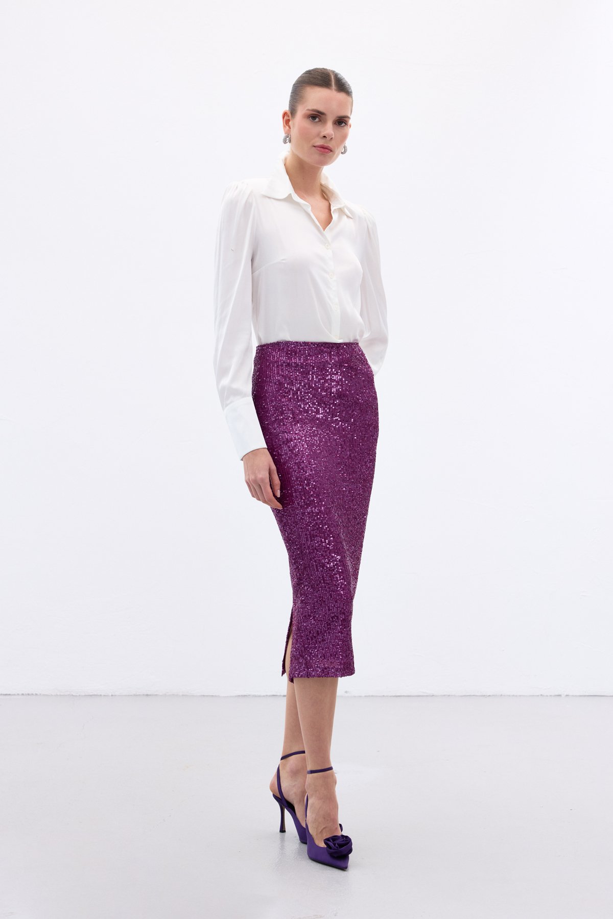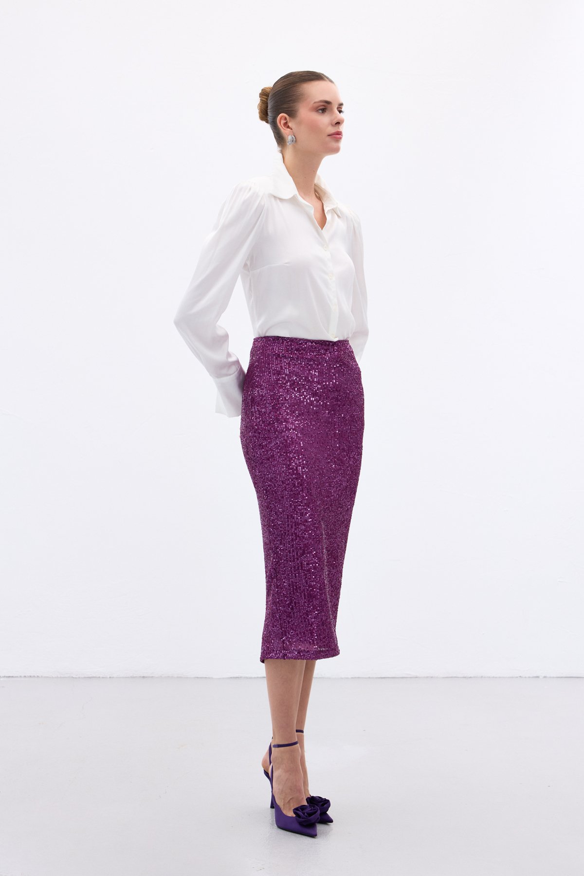 Payet Detaylı Kalem Etek - Mürdüm (STN139KET2093-MU)