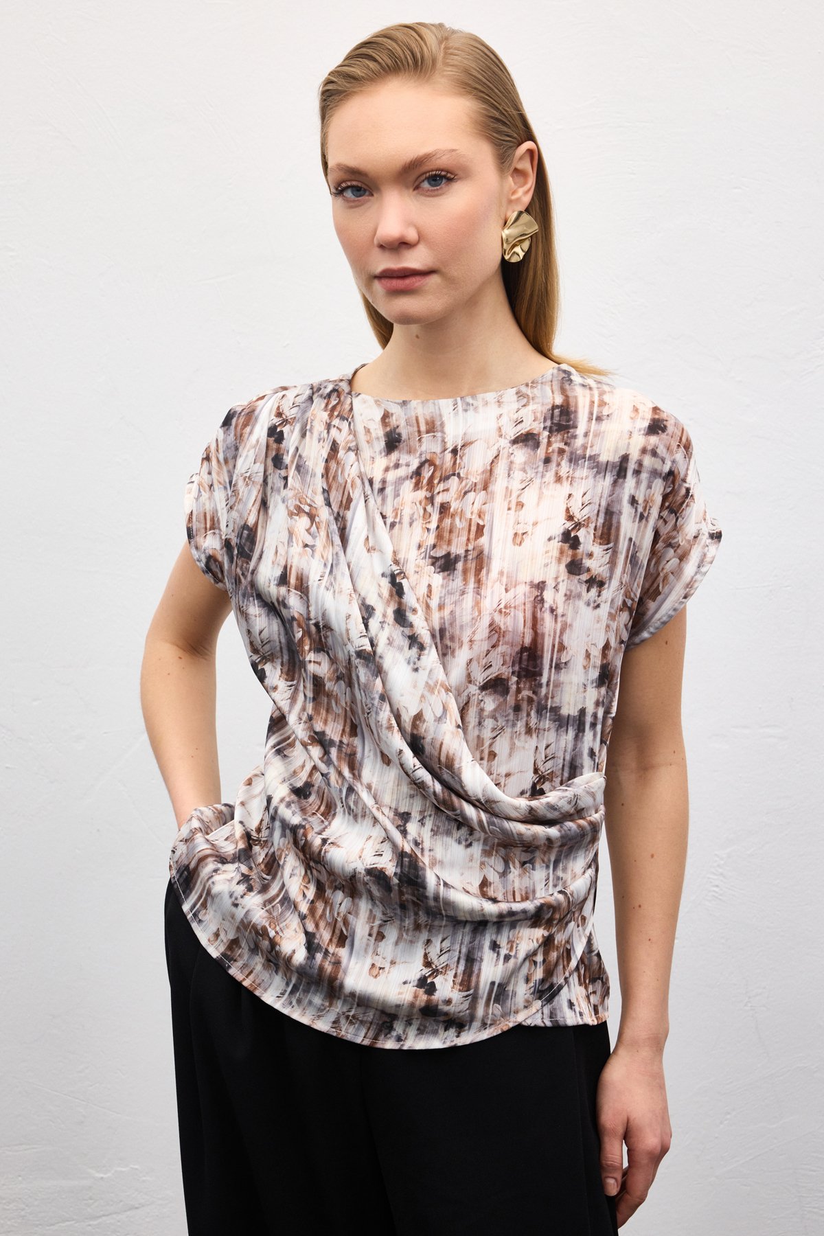 Pileli Kolsuz Bluz - Kahve (STN139KBL1988-014)