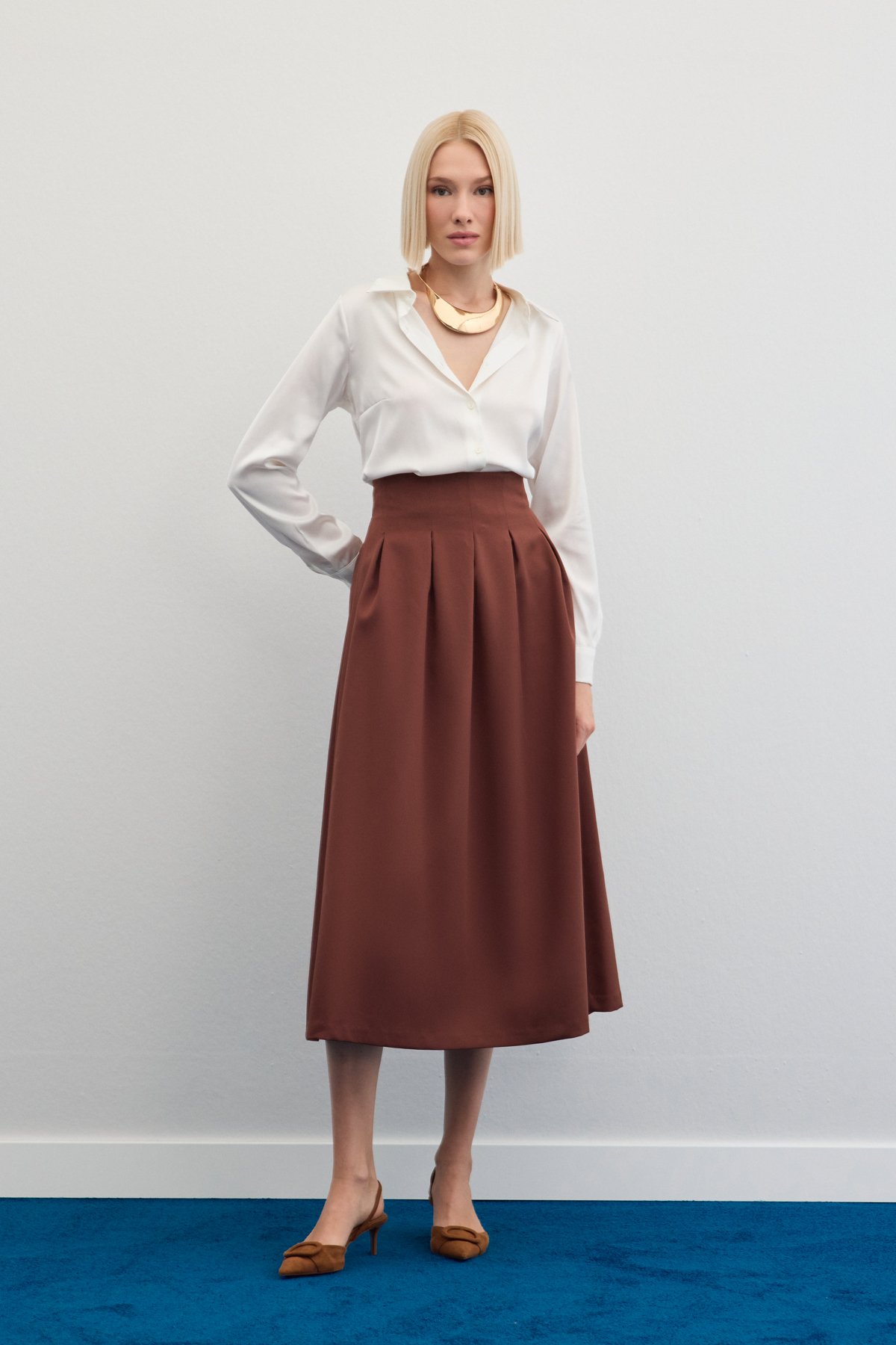 Pileli Midi Etek - Kahve (STN139KET1884-014)