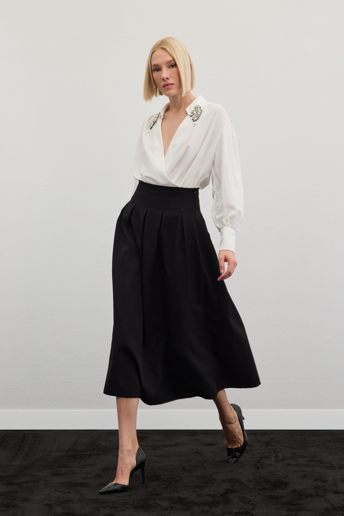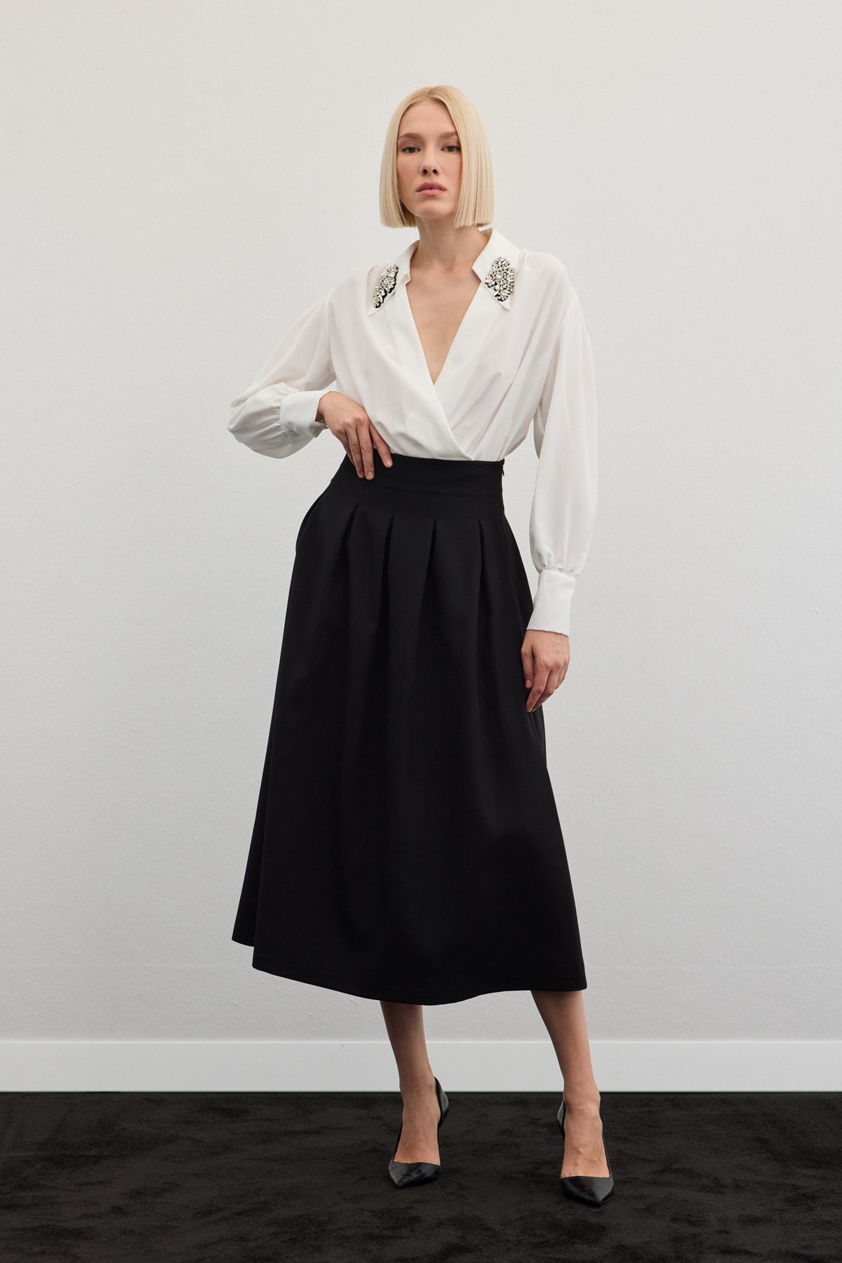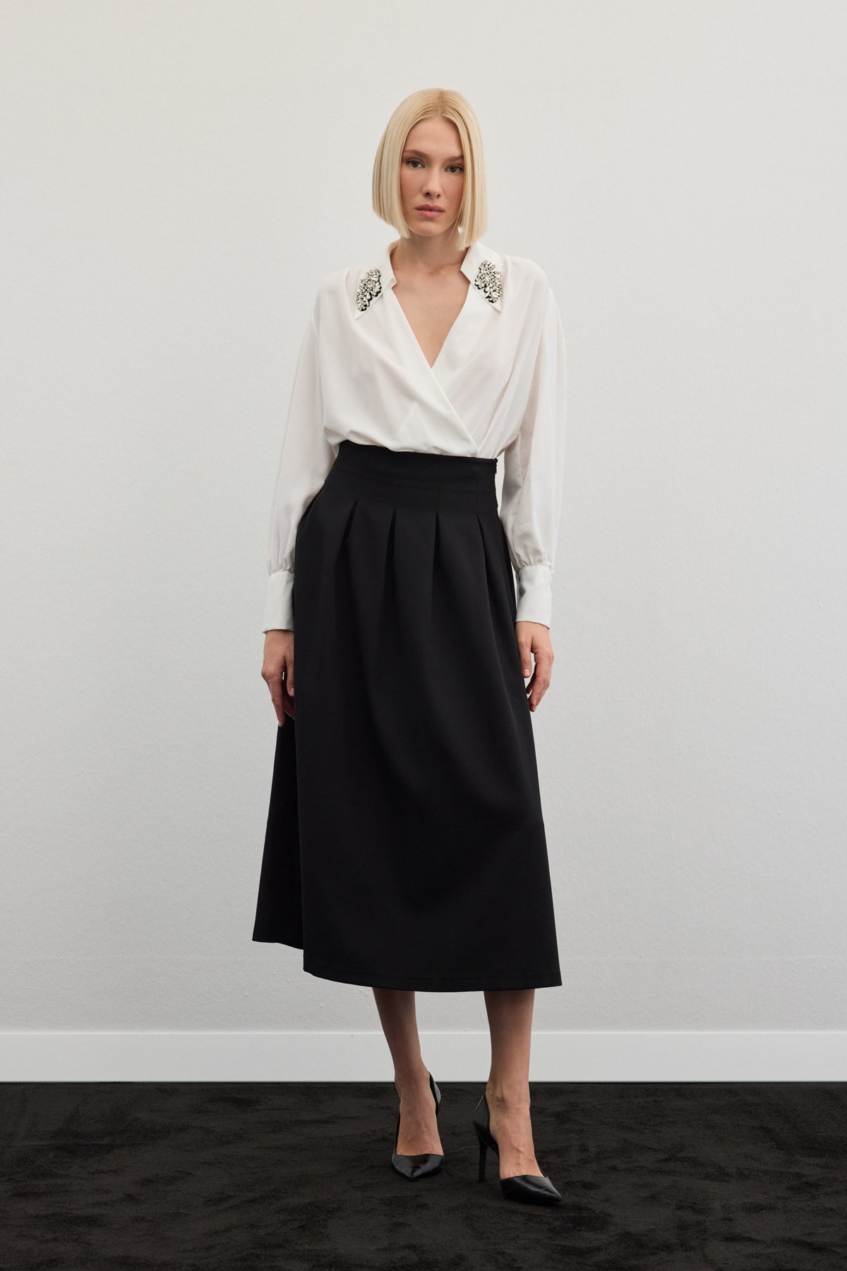 Pileli Midi Etek - Siyah (STN139KET1884-5)