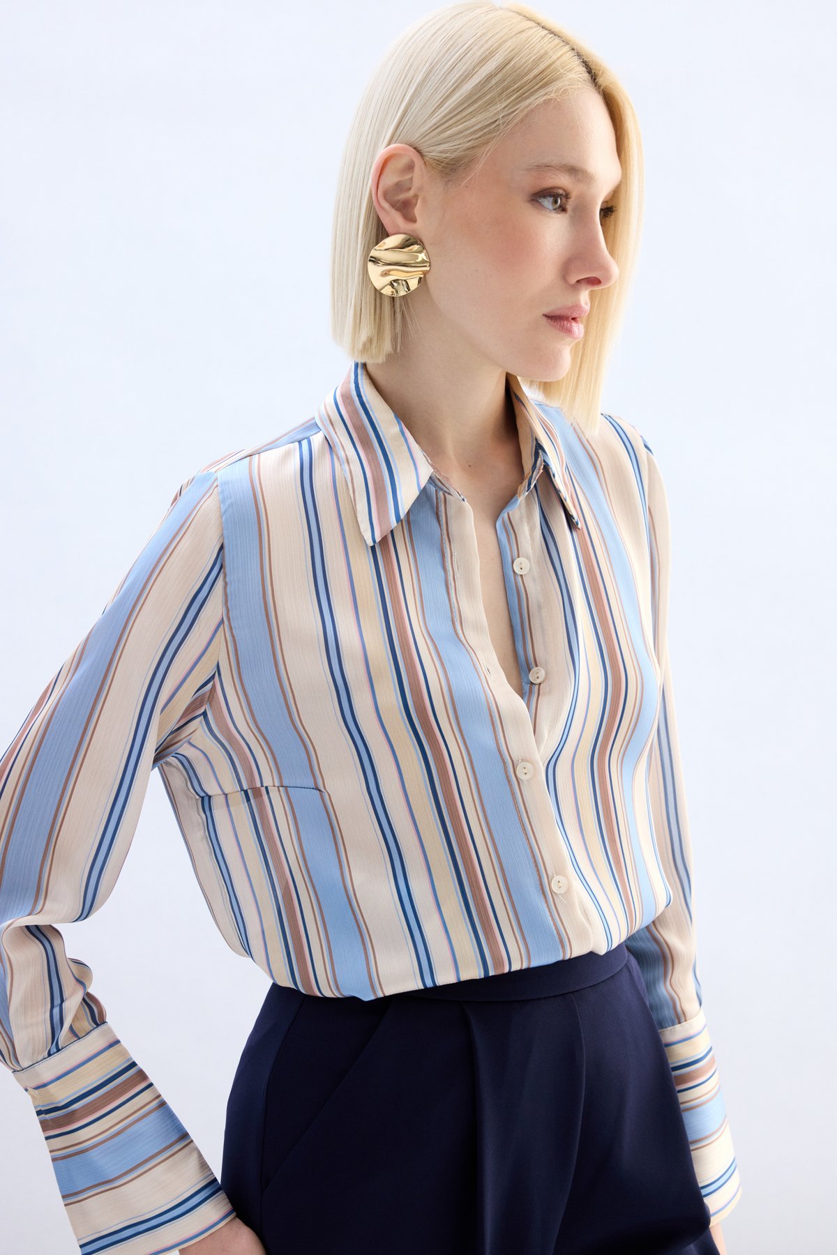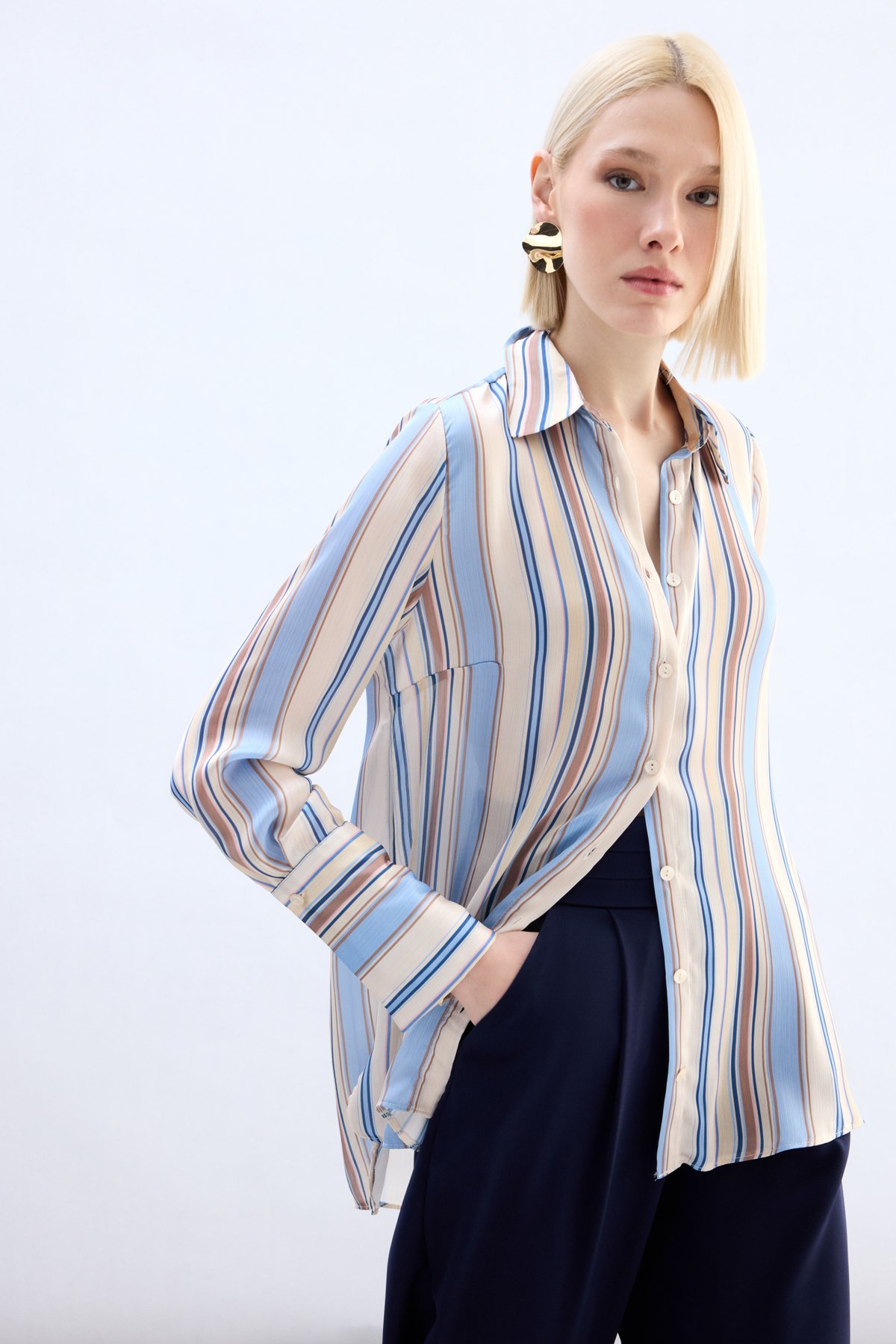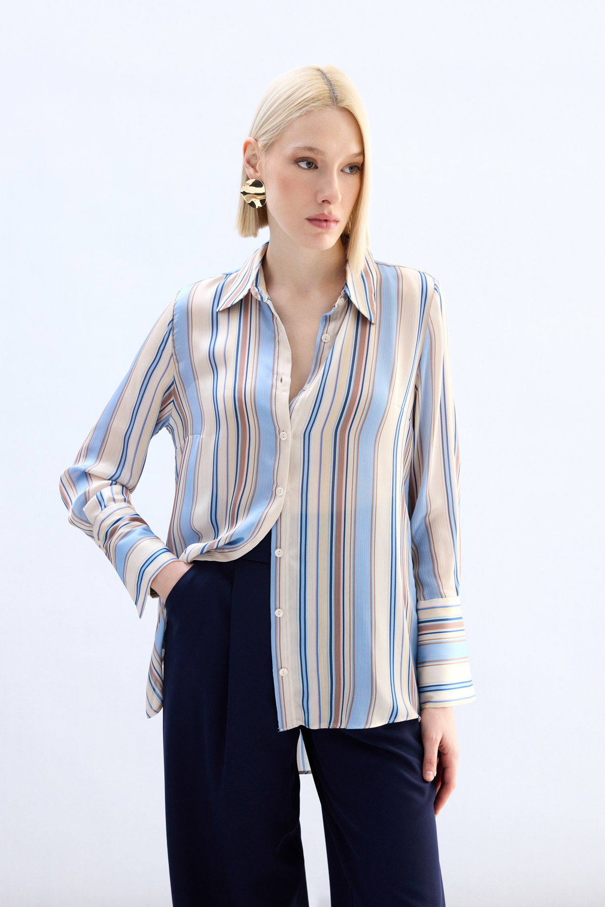 Renkli Çizgili Gömlek - Bebe Mavi (STN139KGO1991-BEV)