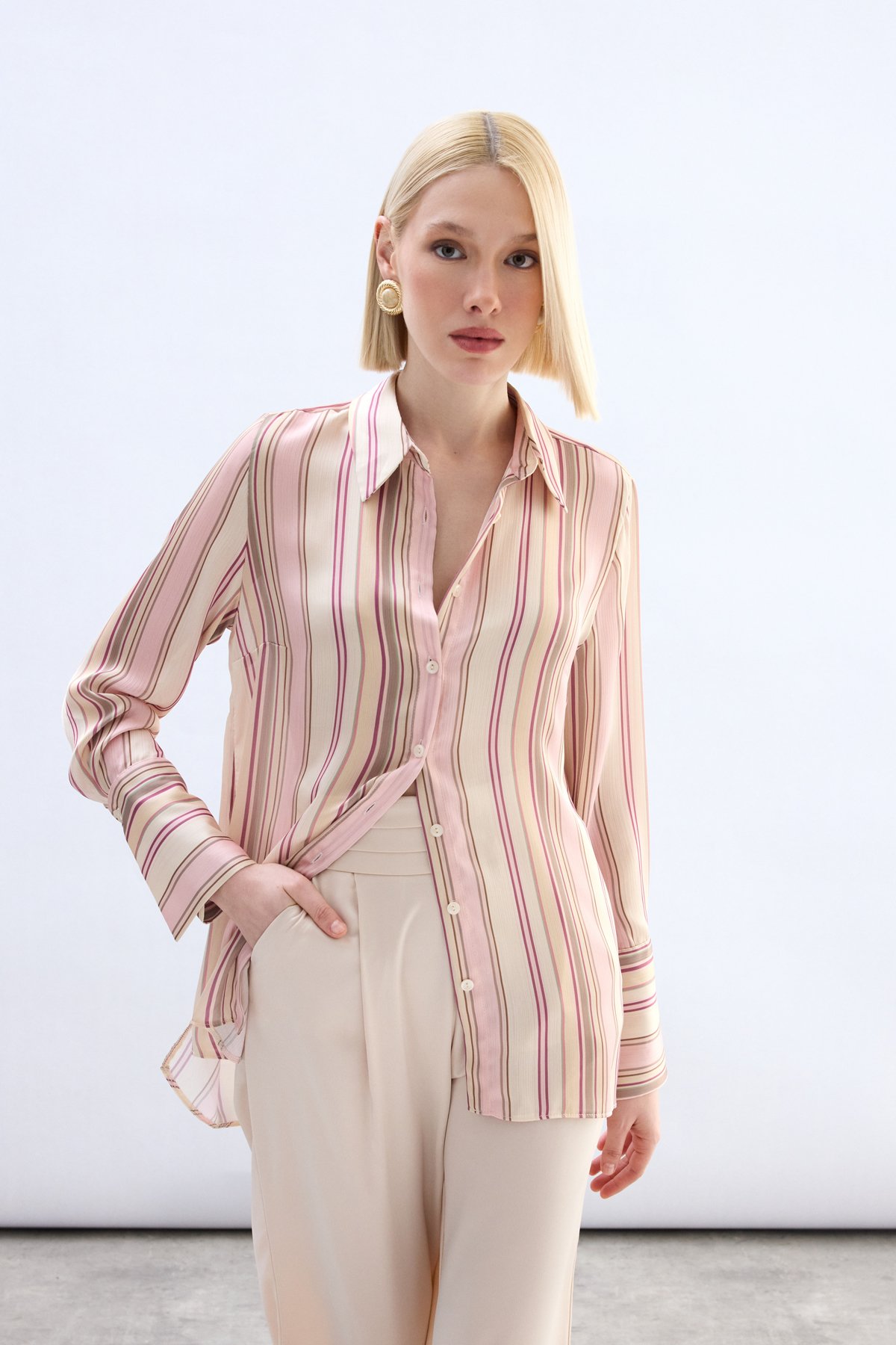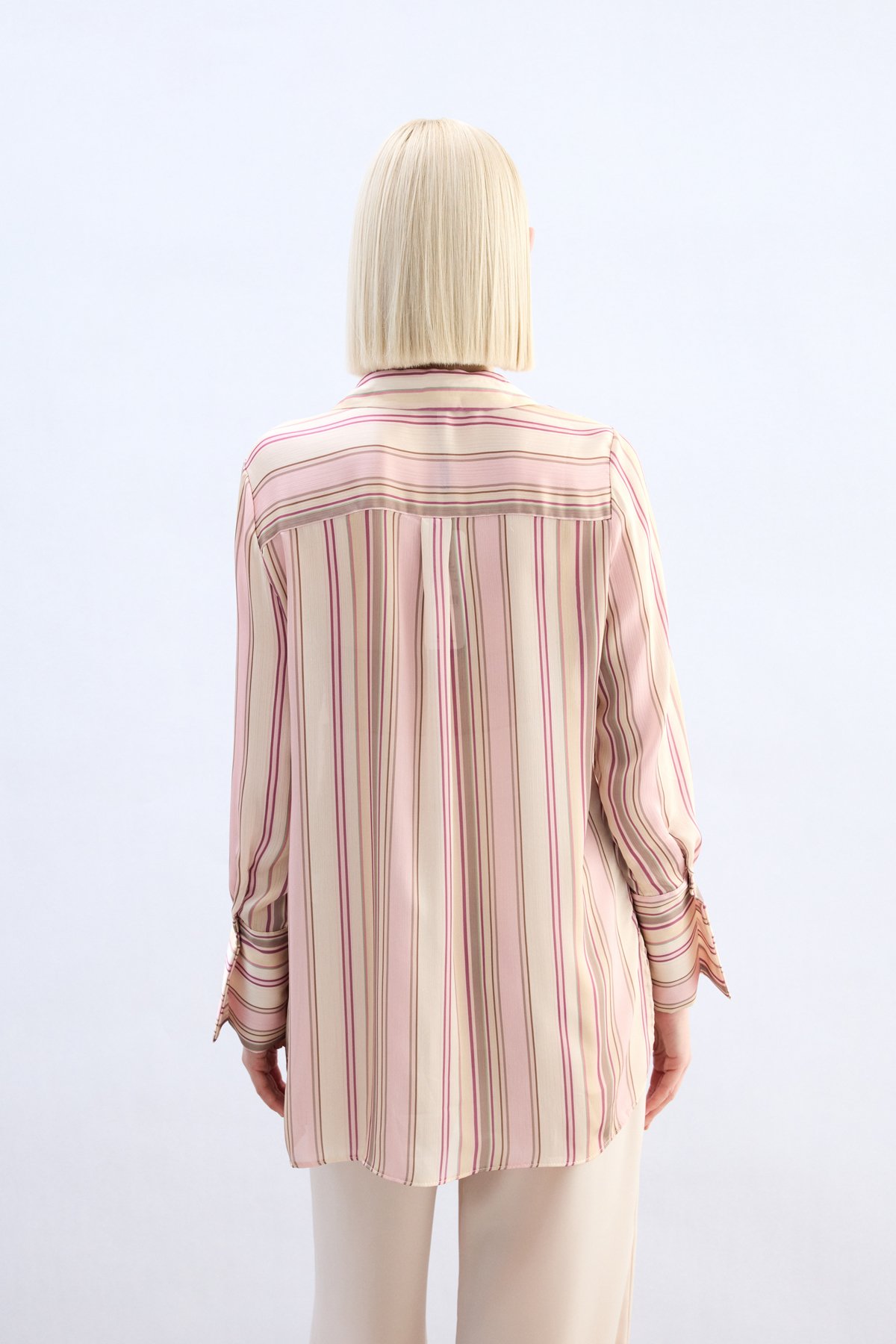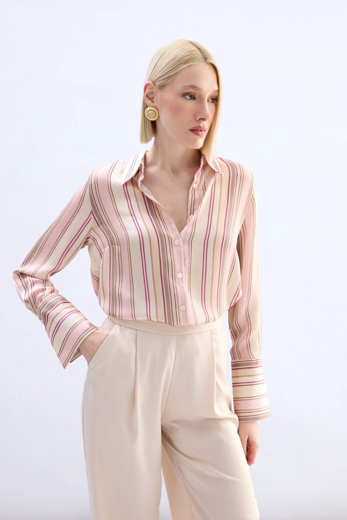 Renkli Çizgili Gömlek - Pudra (STN139KGO1991-P)