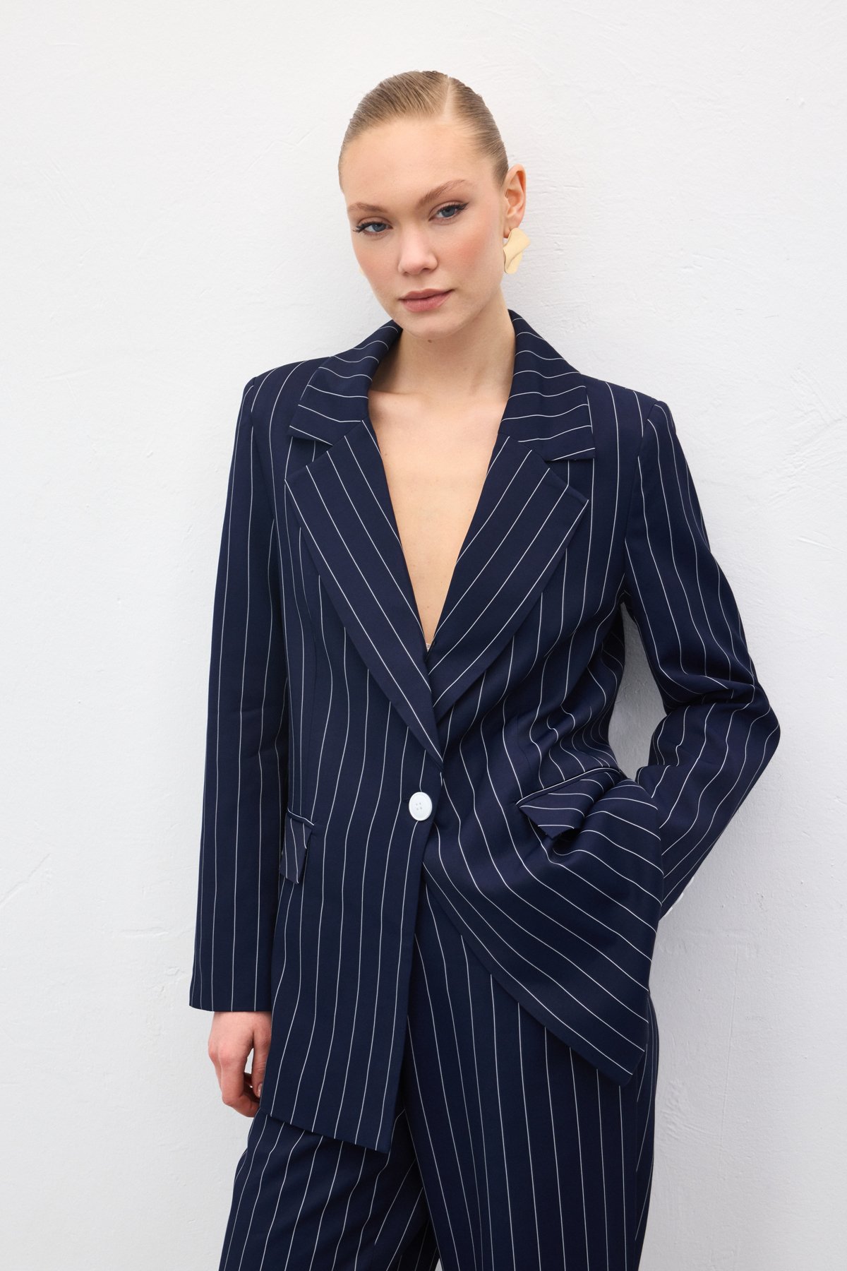 Rina Çizgili Ceket - Lacivert (STN139KCE1998-LAC)