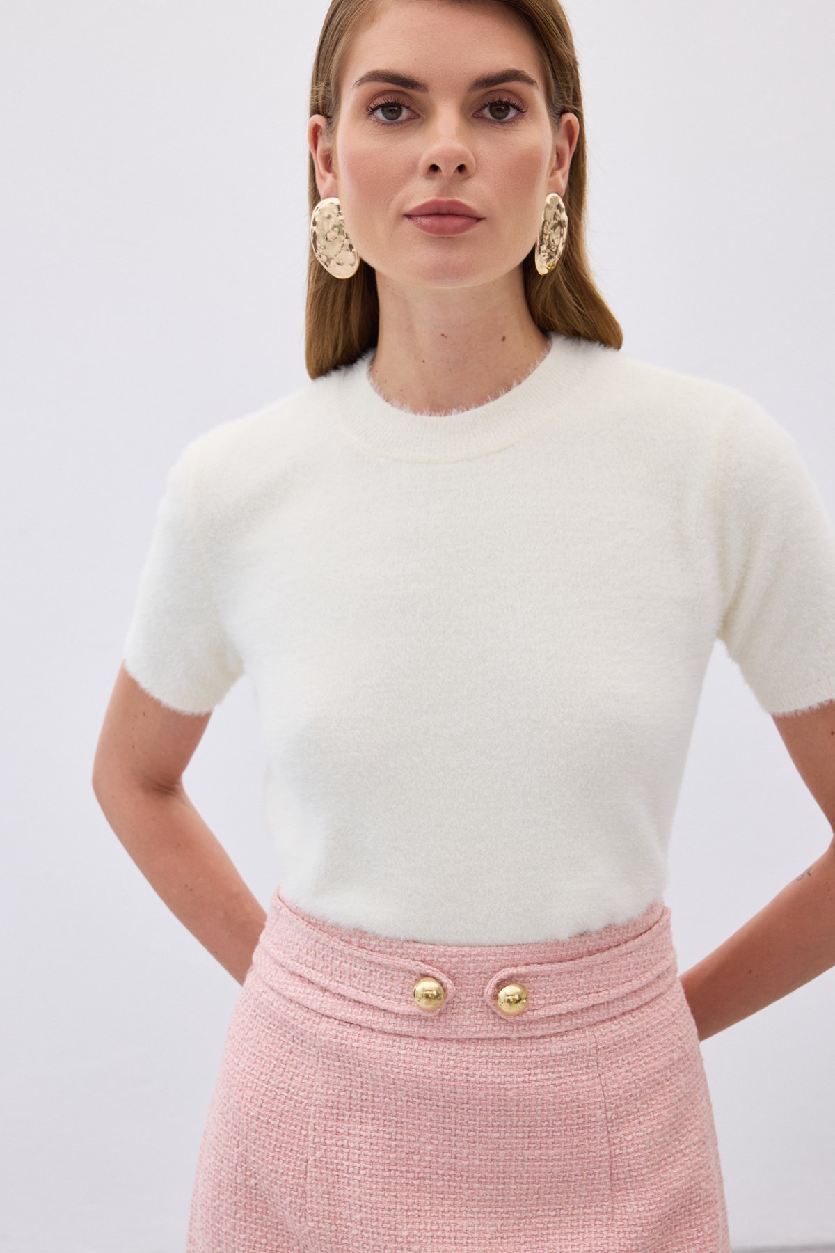 Sakallı Kısa Kol Triko - Ekru (STN135KTR123-EK)