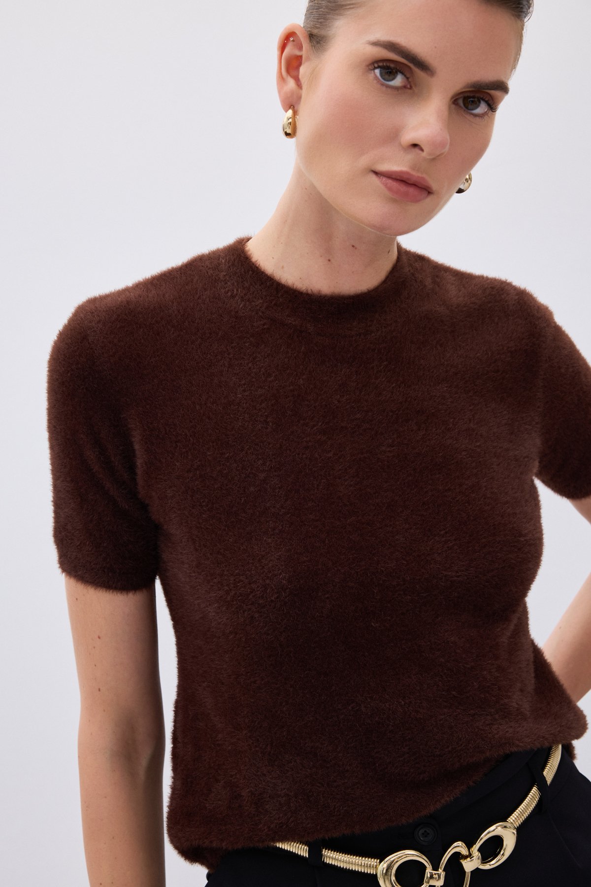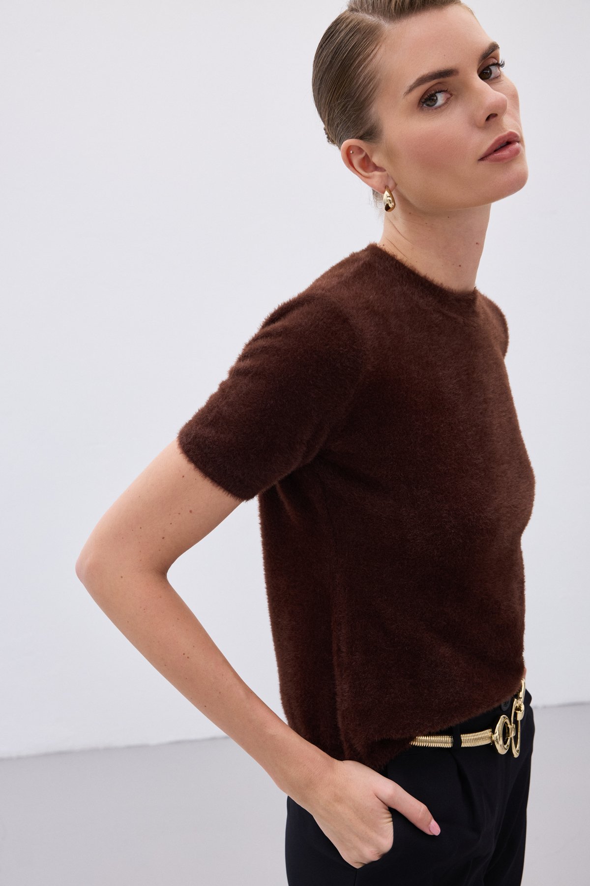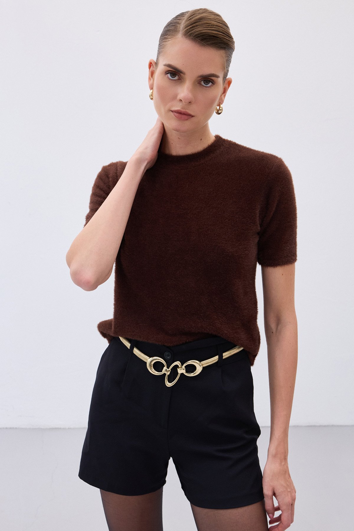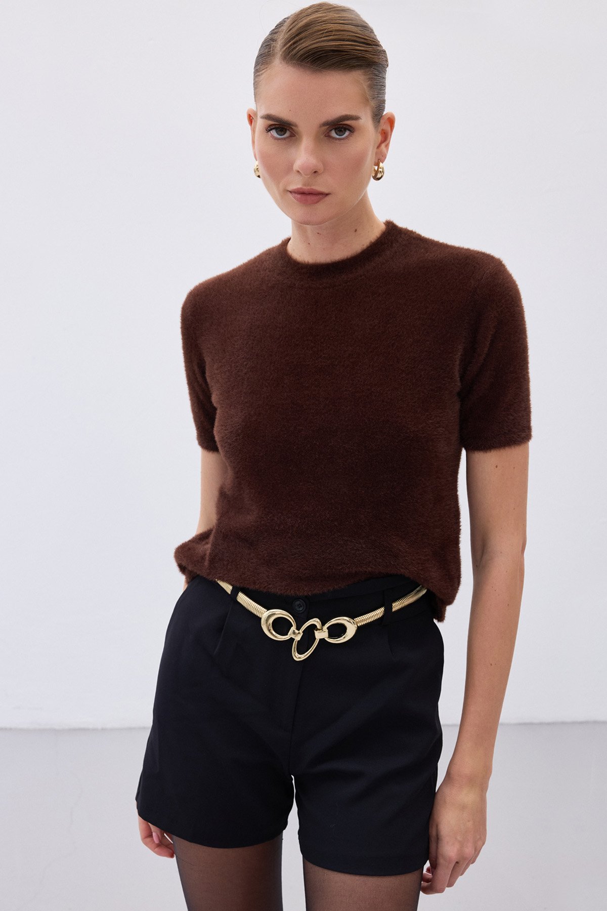 Sakallı Kısa Kol Triko - Kahve (STN135KTR123-014)
