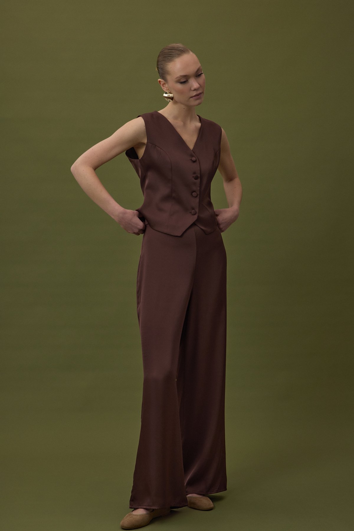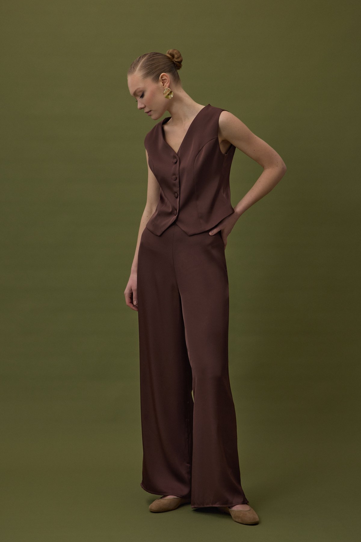 Saten Pantolon - Kahve (STN139KPA1935-014)