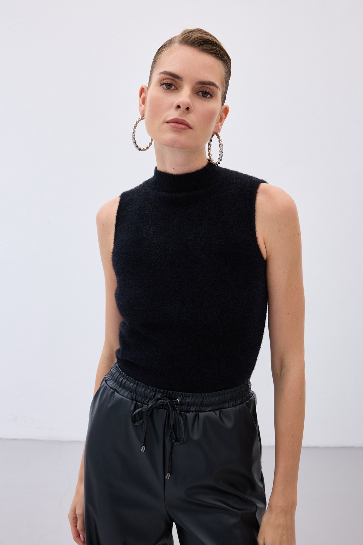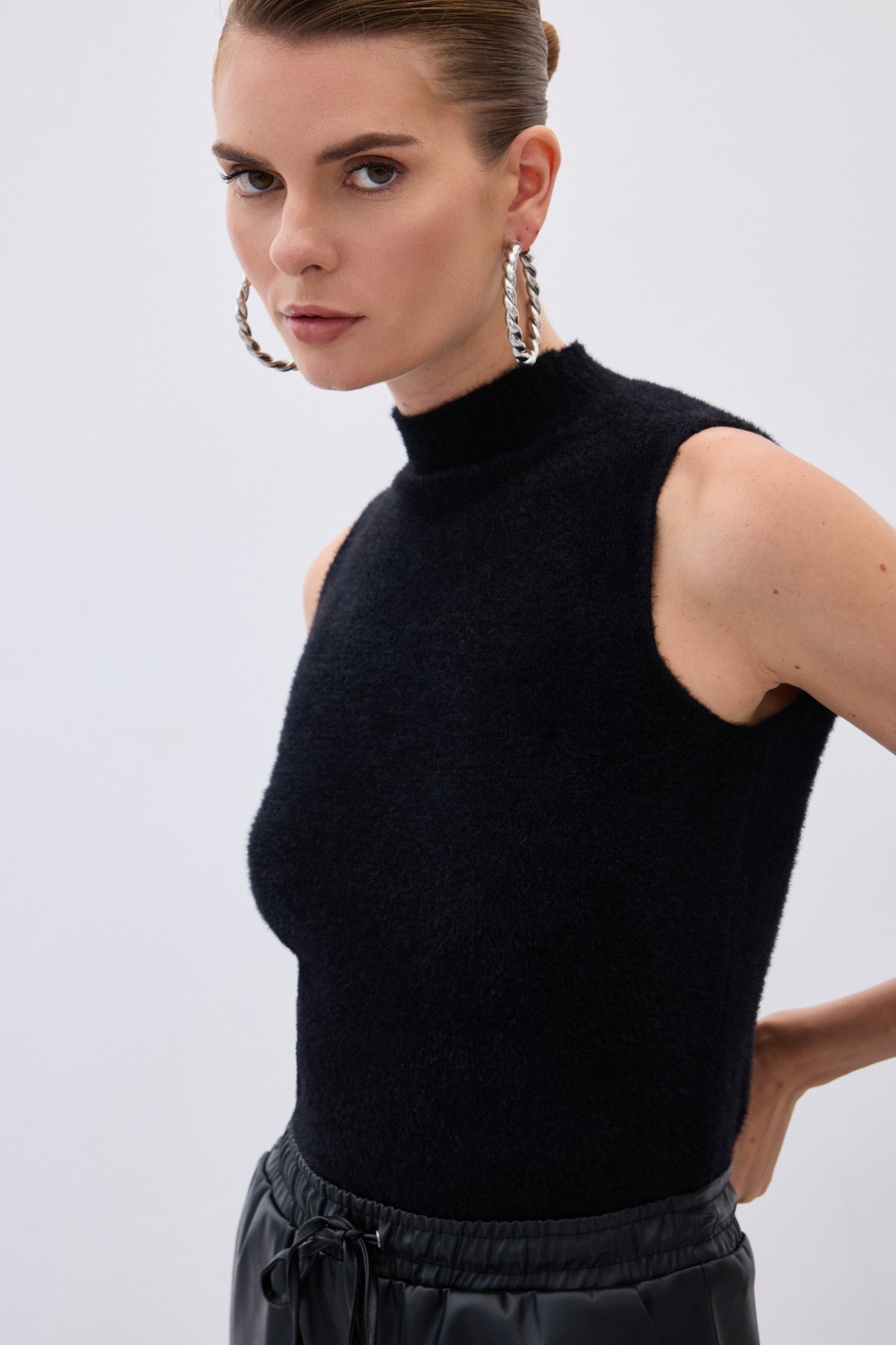 Sıfır Kol Sakallı Triko Bluz - Siyah (STN135KTR125-005)