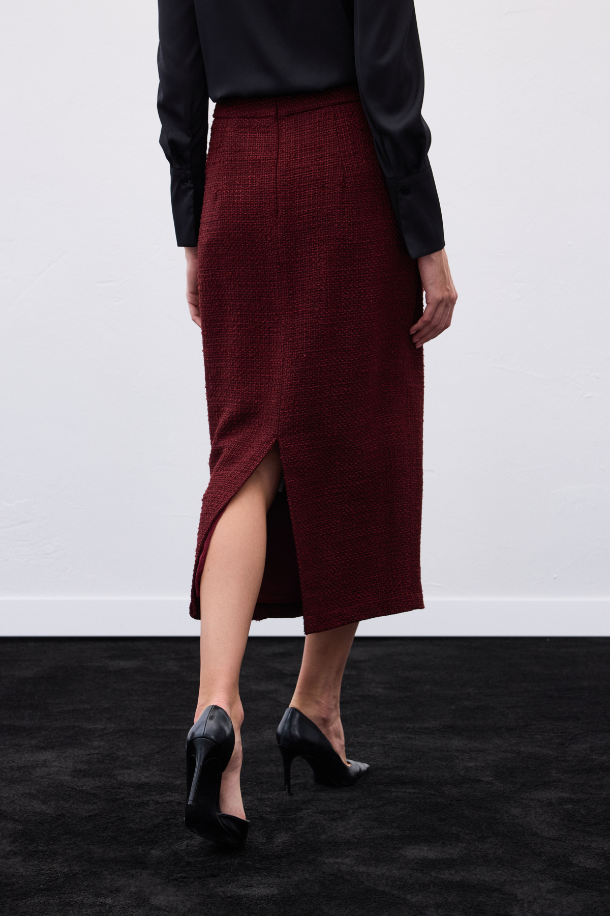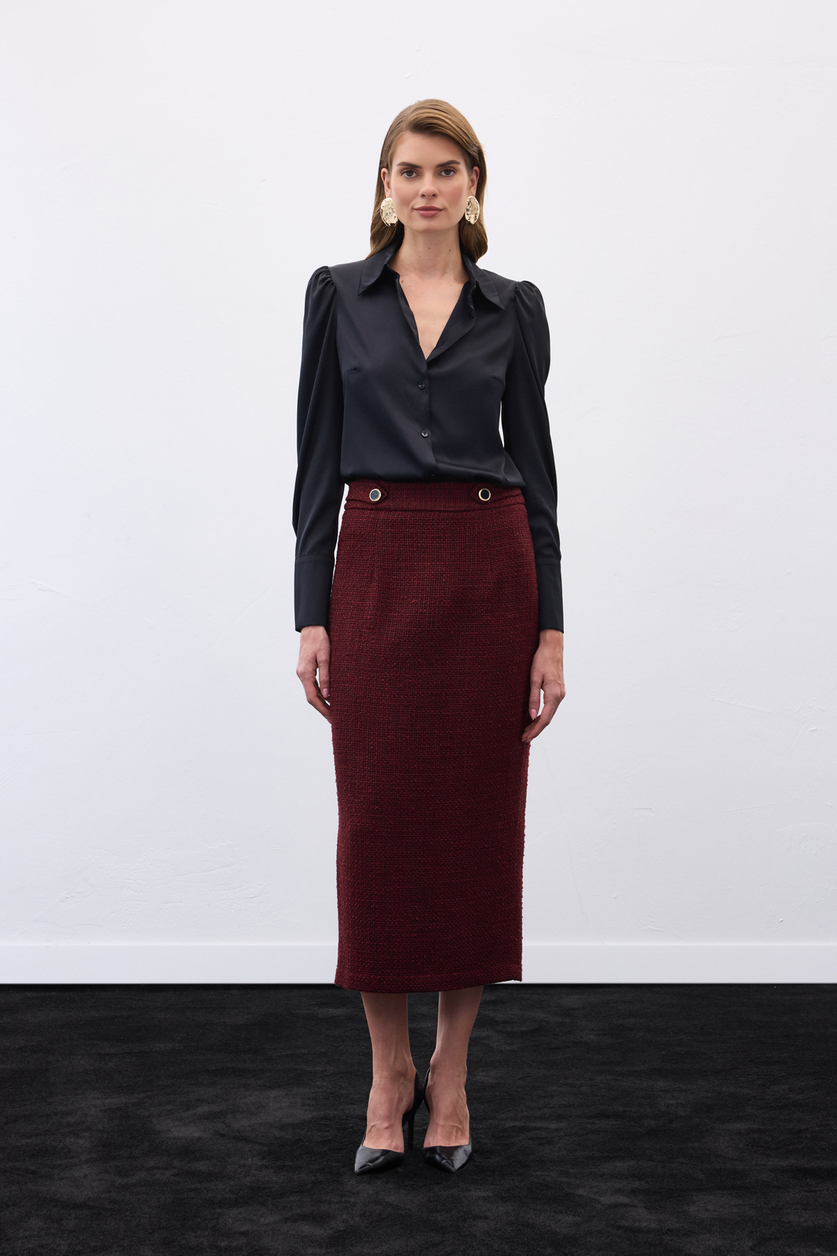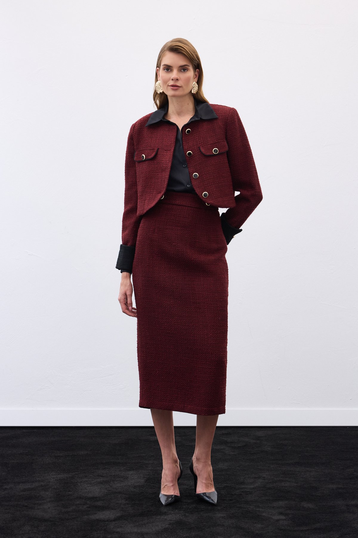 Süs Düğmeli Tüvit Kalem Etek - Bordo (STN139KET1548-BOR)