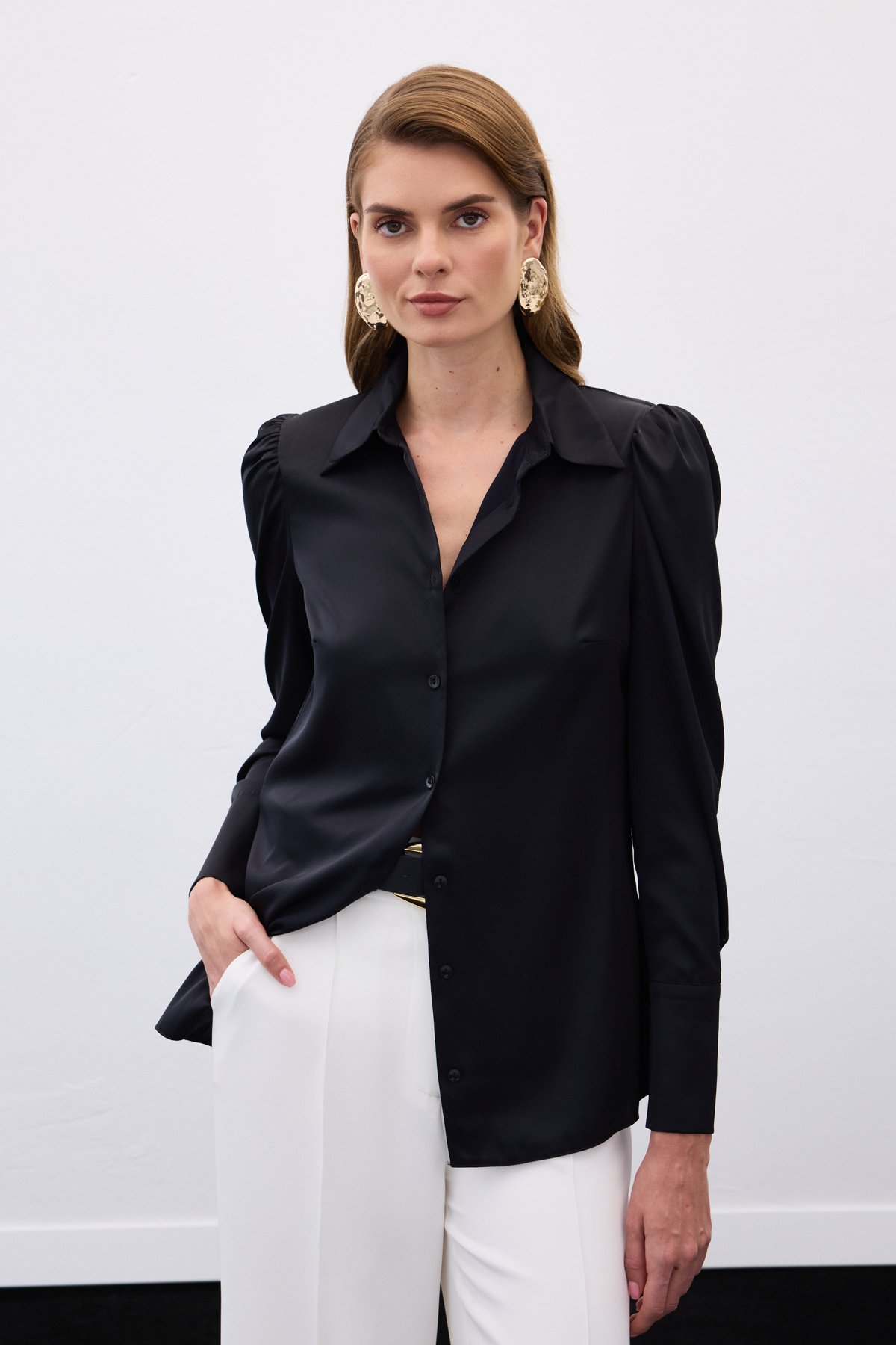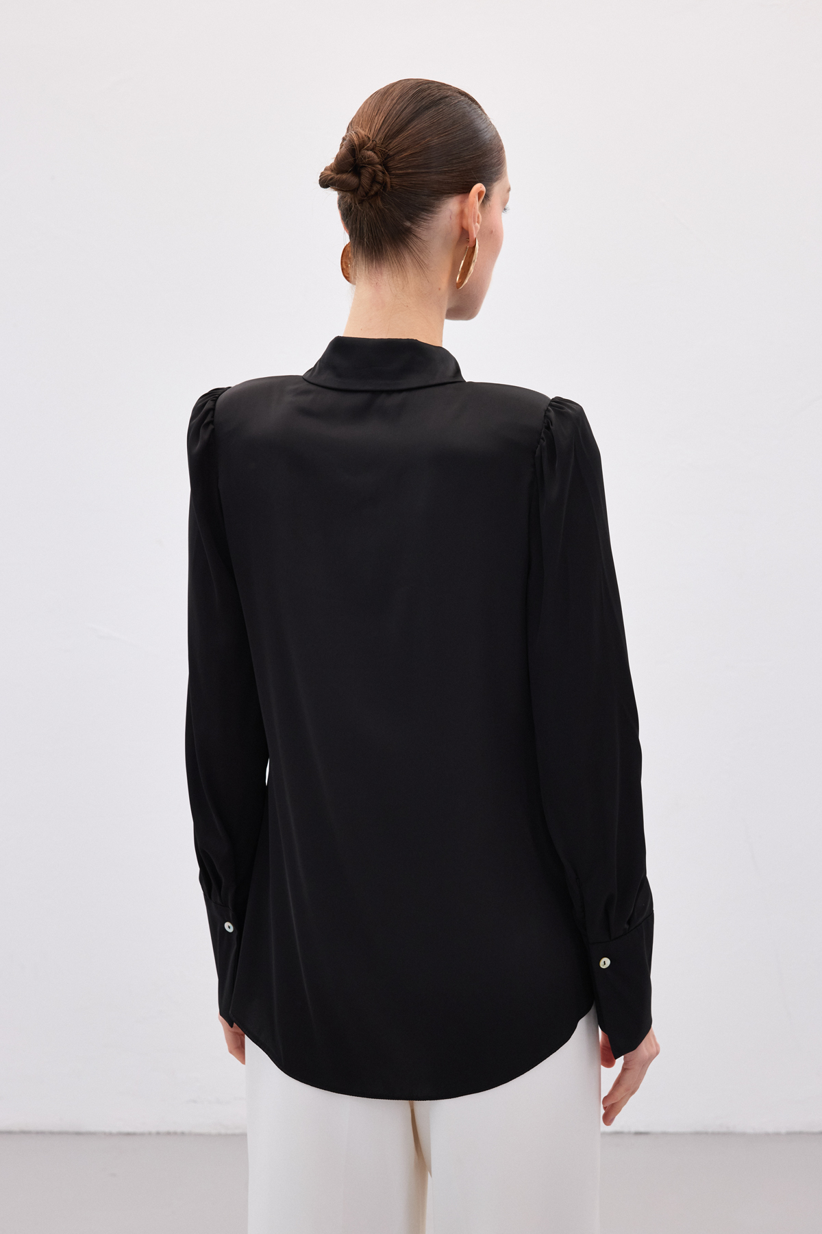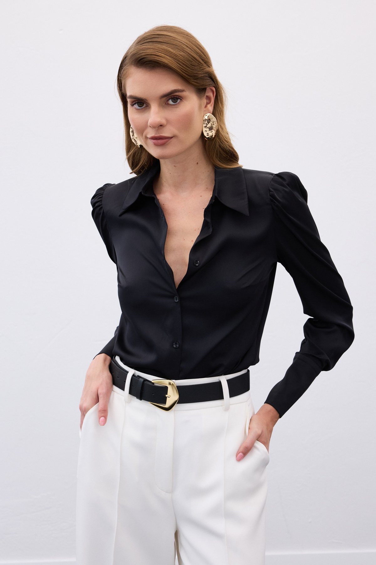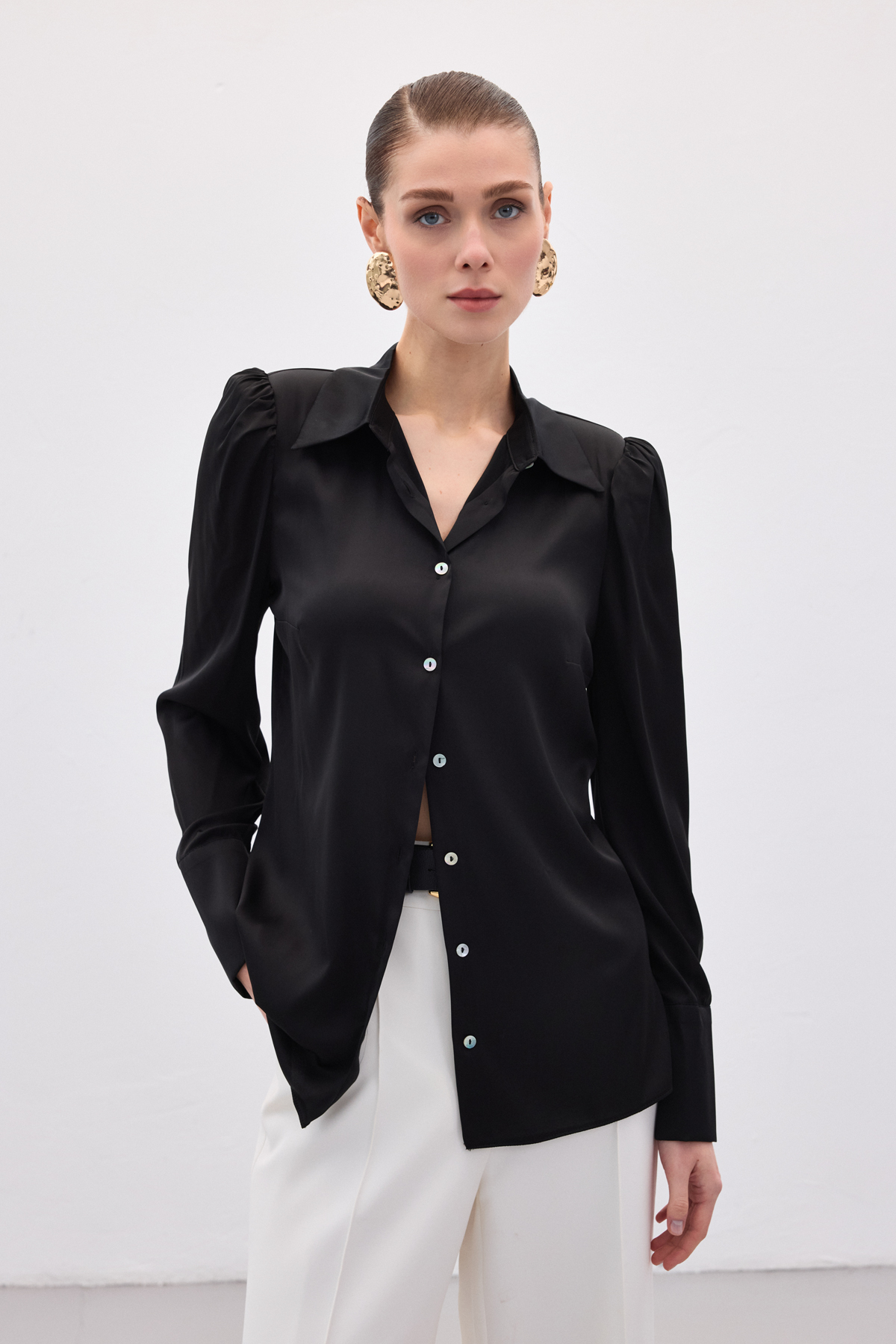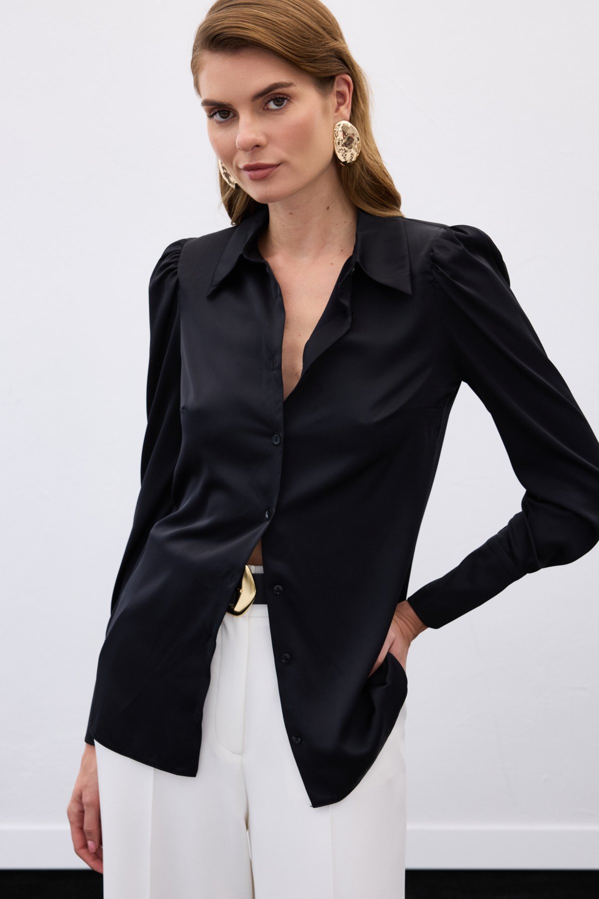 Vatkalı Saten Gömlek - Siyah (STN139KGO865-5)