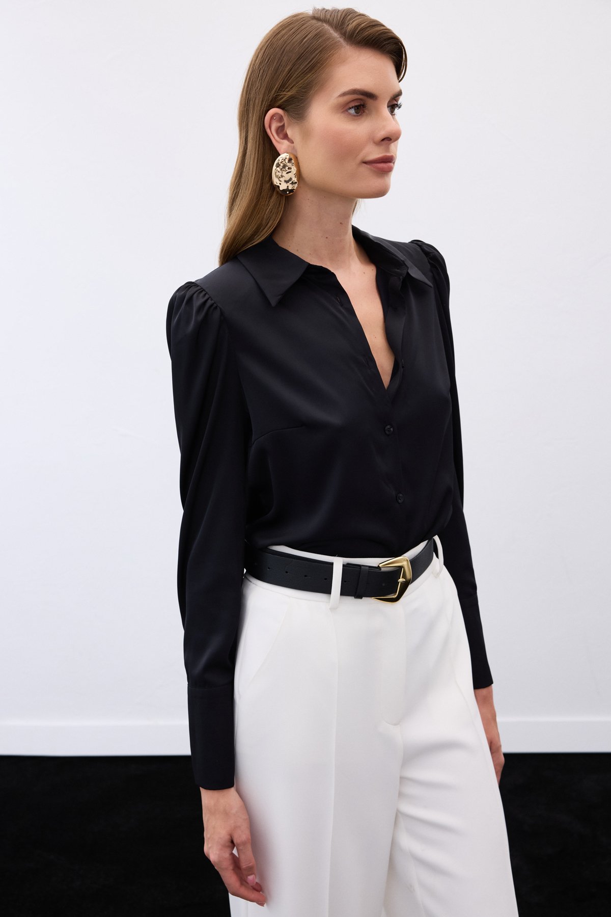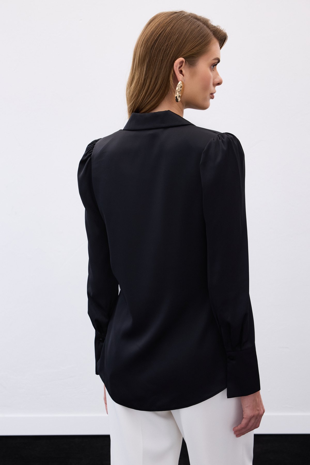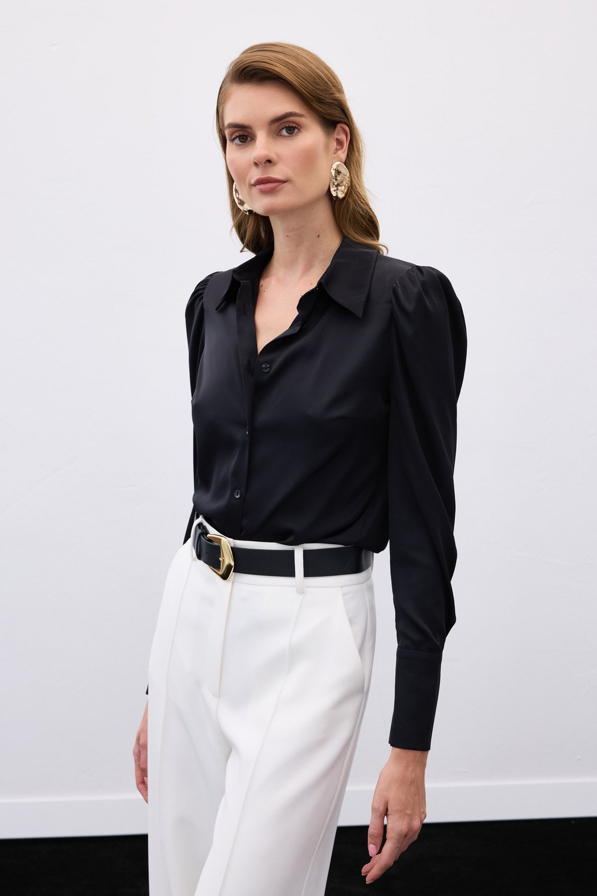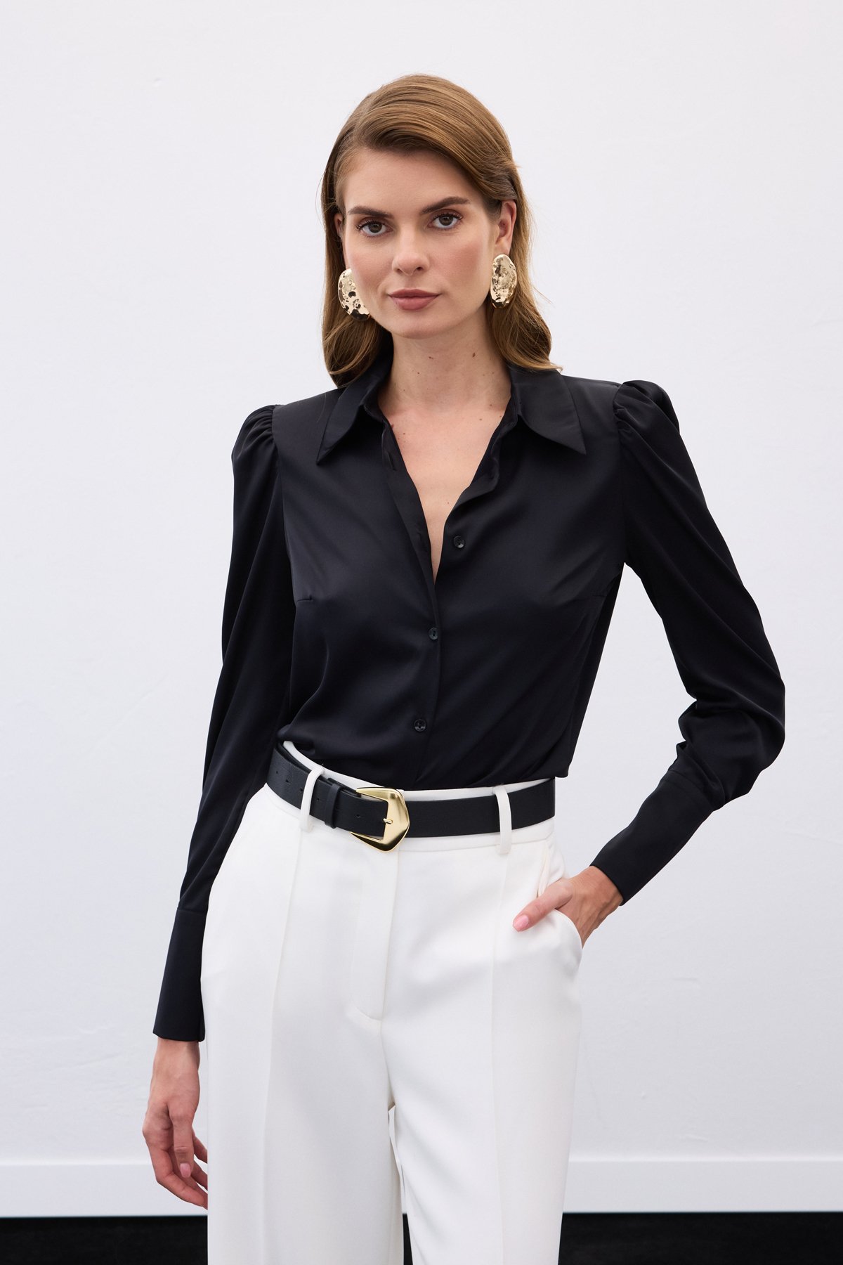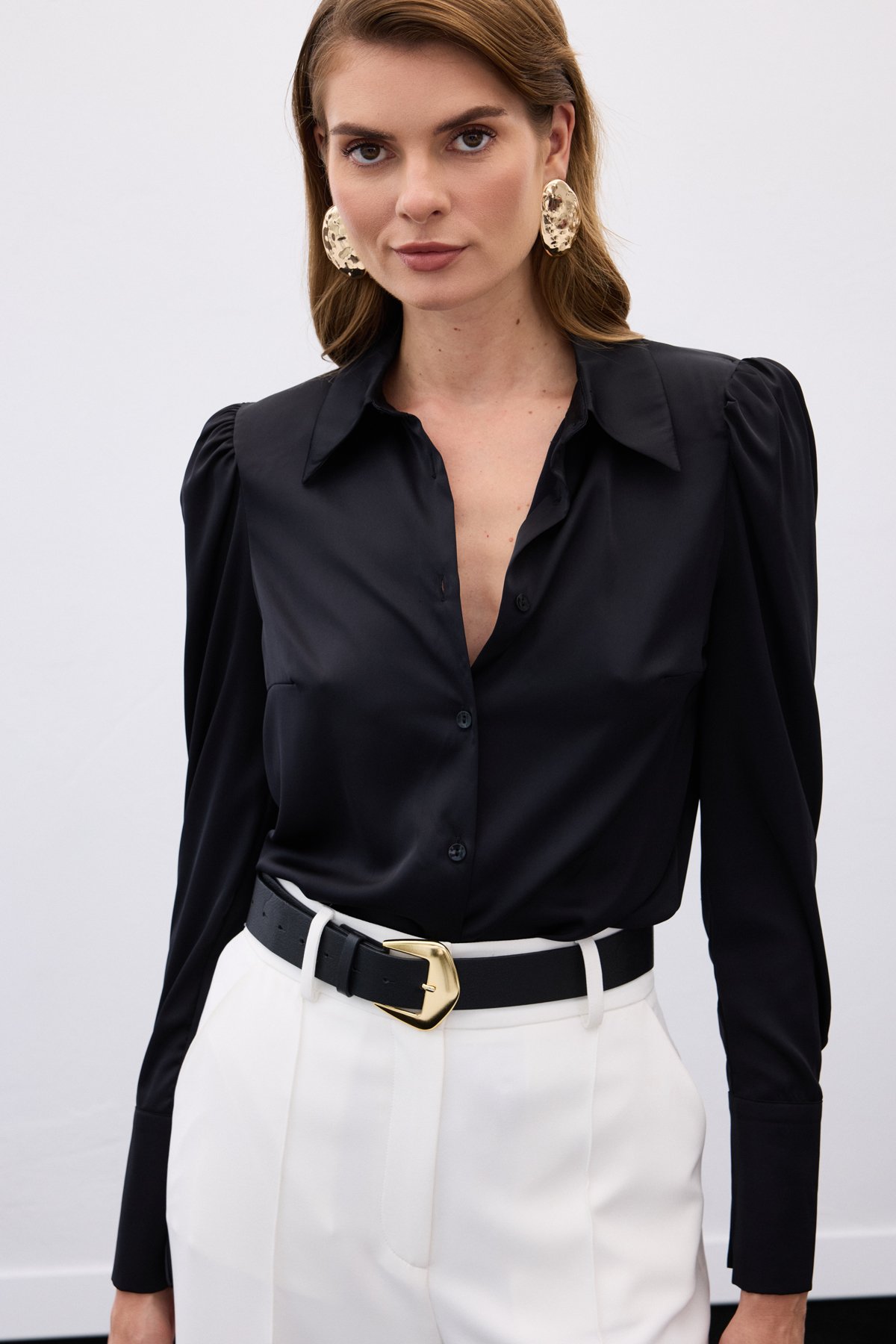 Vatkalı Saten Gömlek - Siyah (STN139KGO865-5)