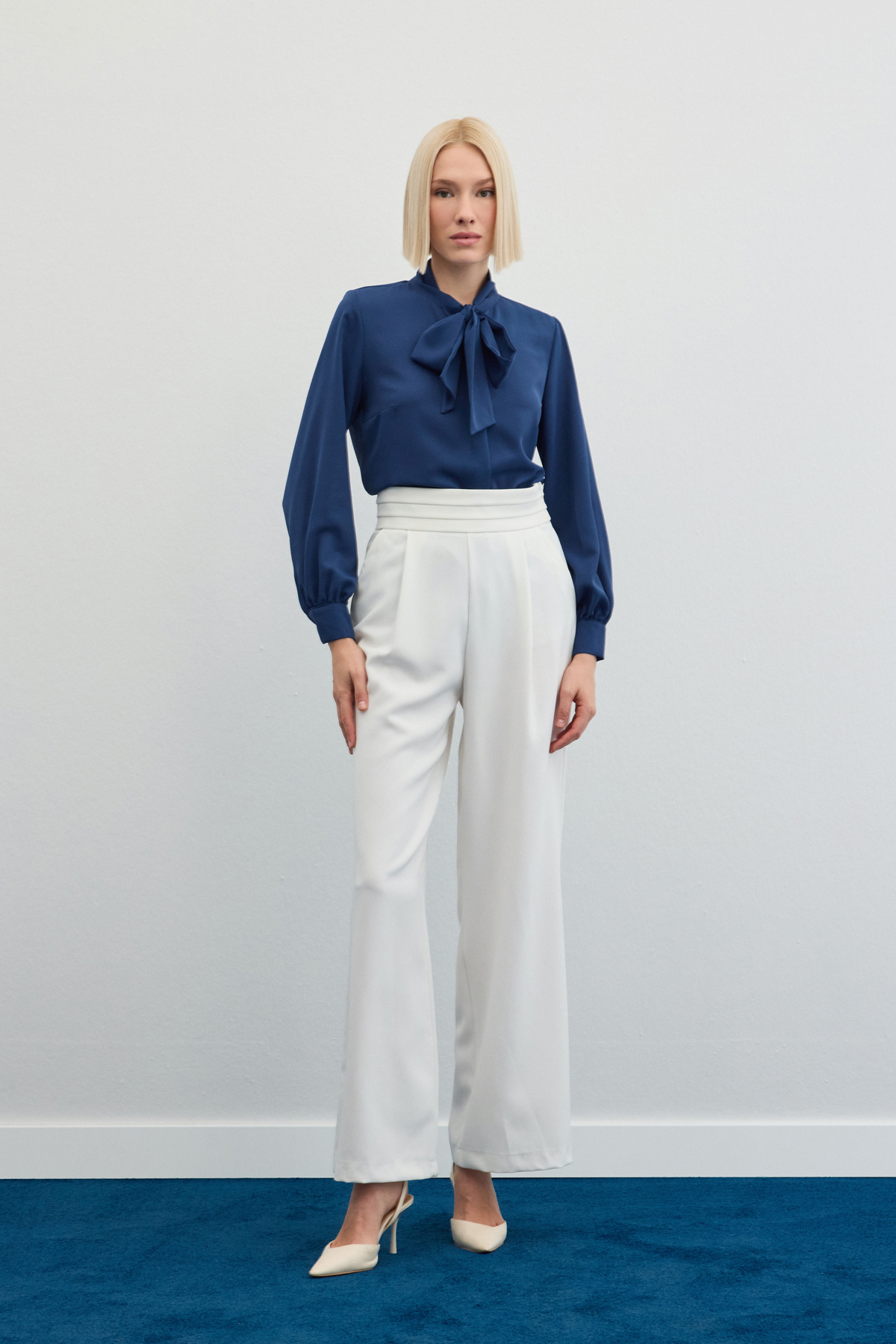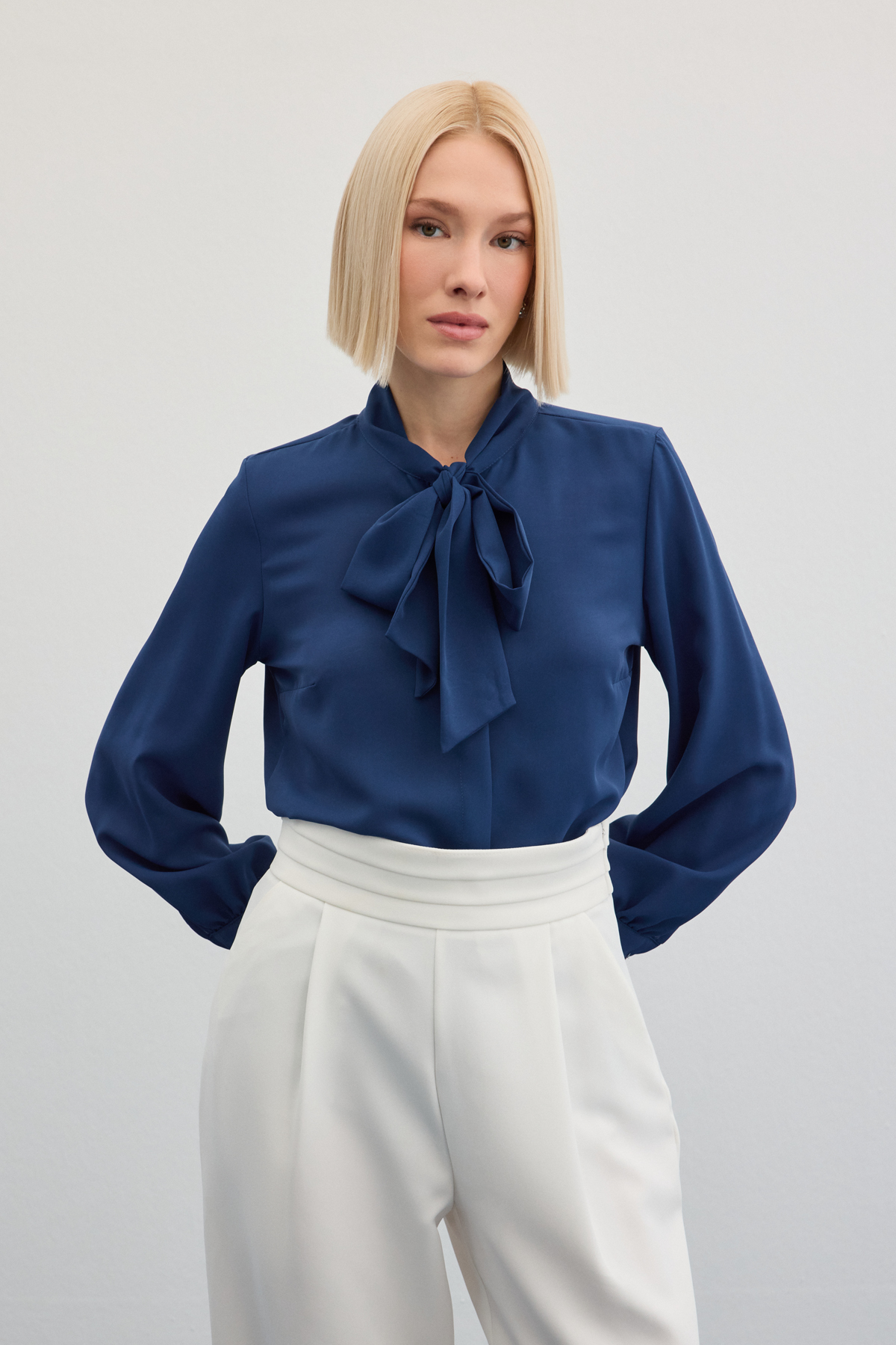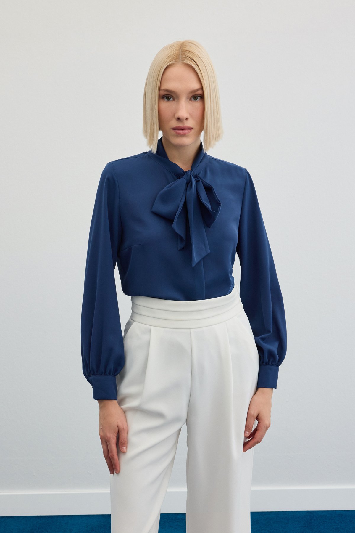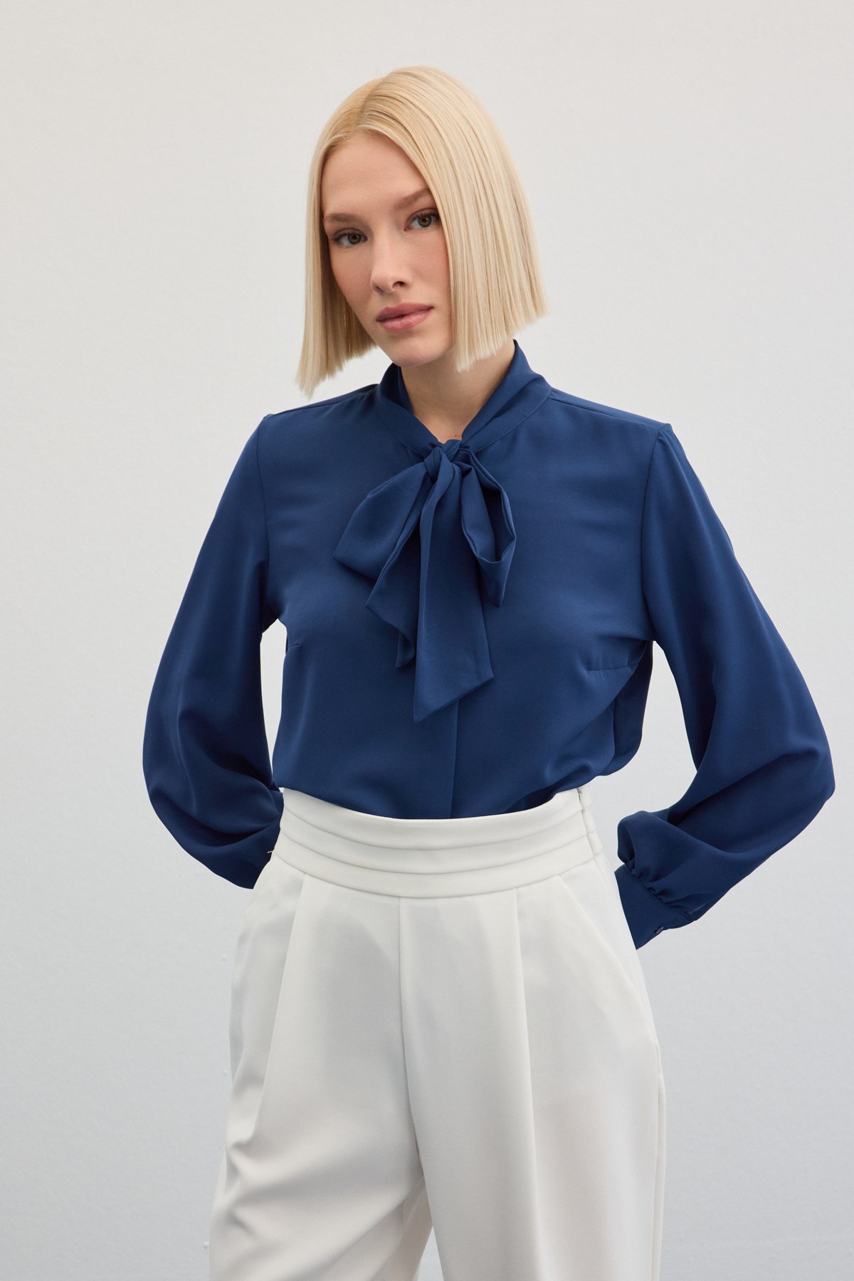 Yakası Bağlamalı Düz Gömlek - İndigo (20KGO139K267-I)