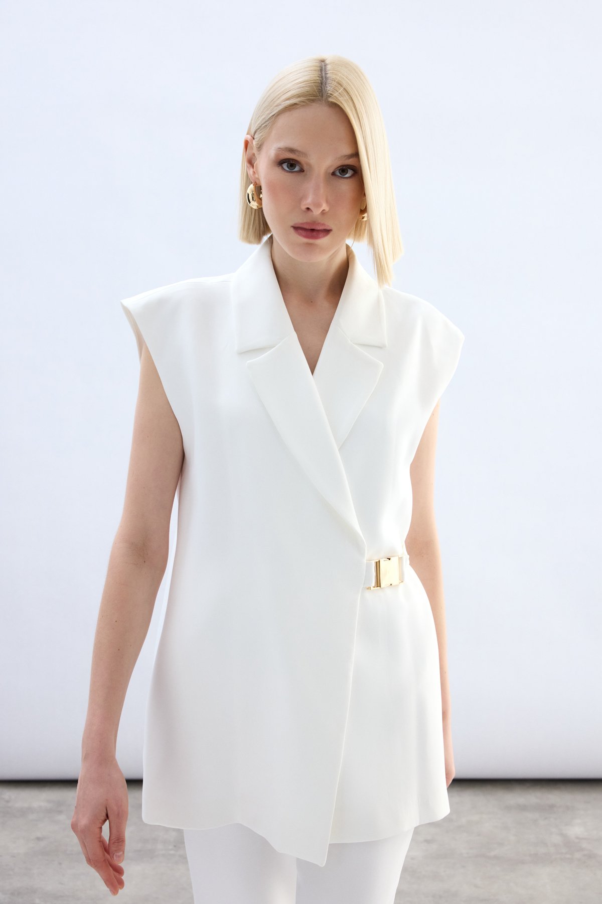 Yan Kemerli Uzun Yelek - Ekru (STN139KYE1944-EK)