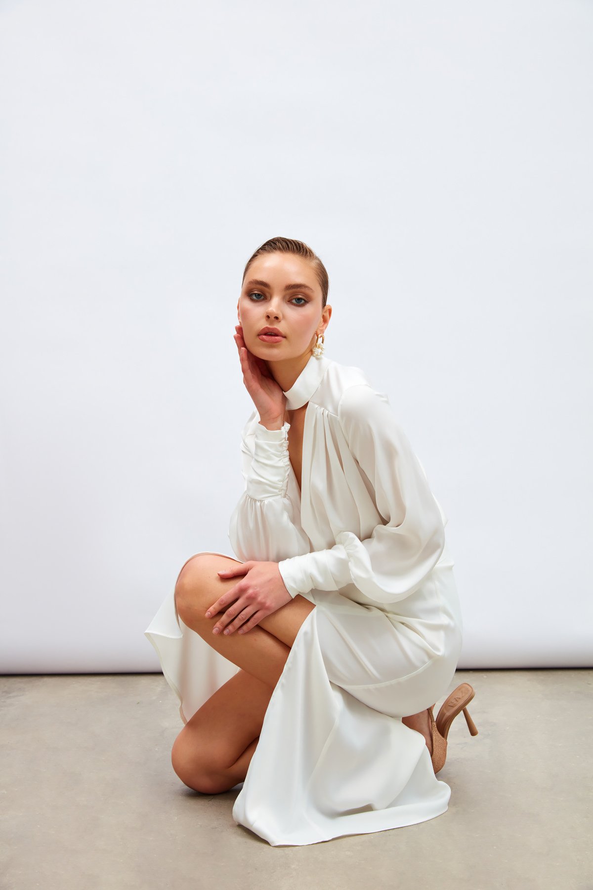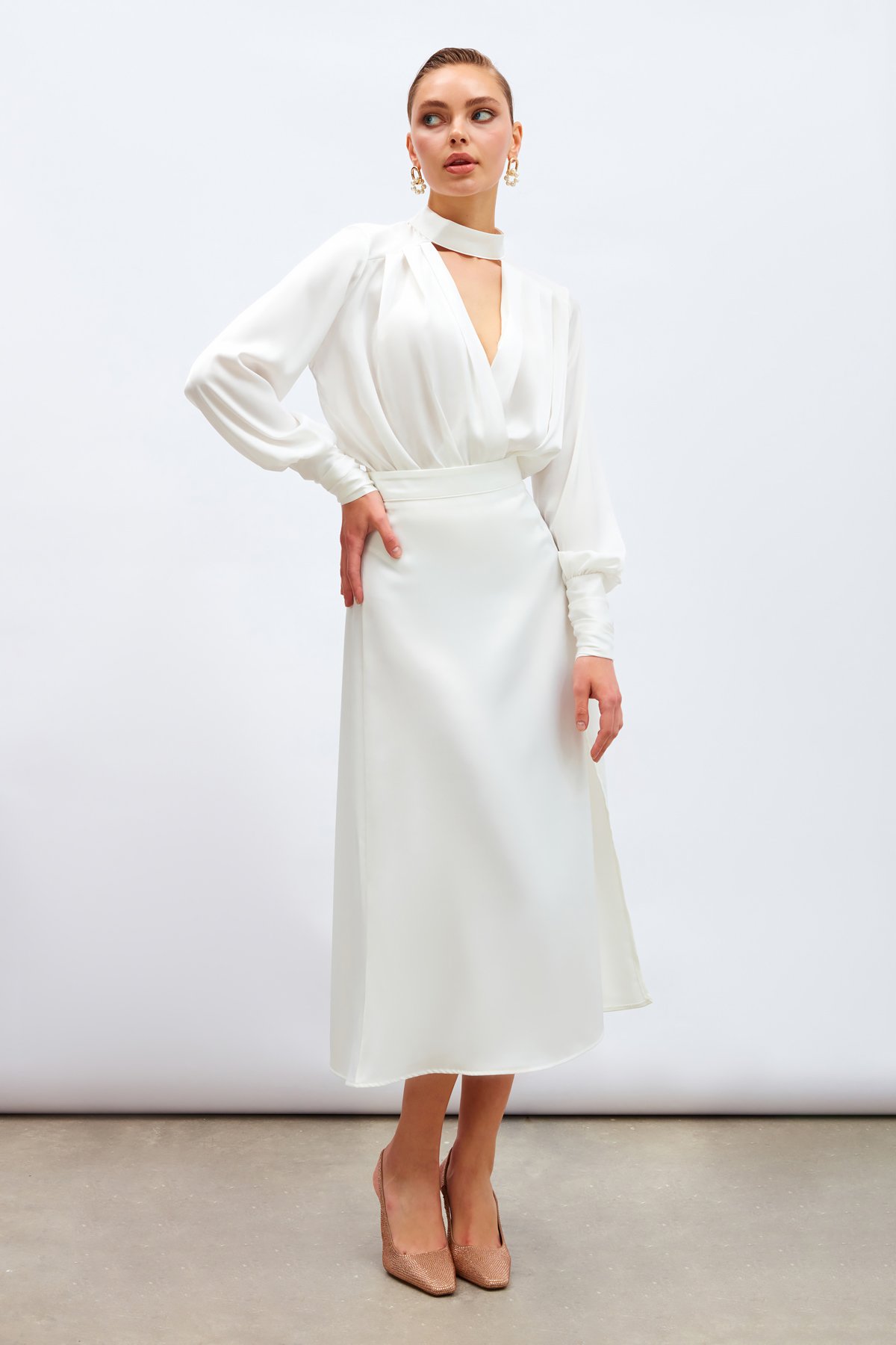 Yırtmaçlı Saten Etek - Ekru (STN139KET1134-EK)