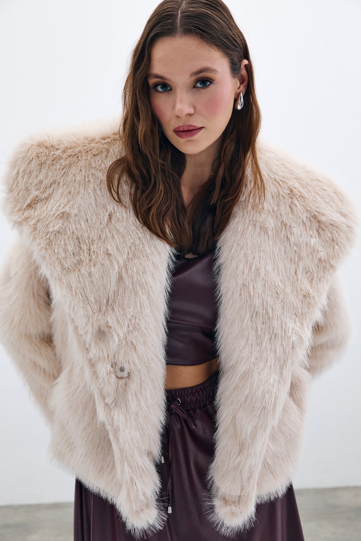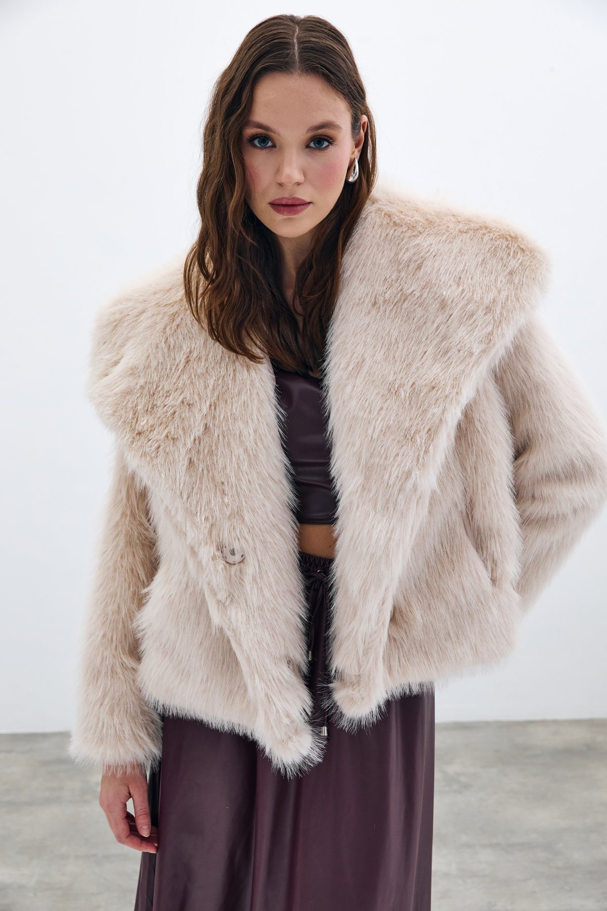 Yakalı Kürk - Bej (STN140KKA101-BEJ)