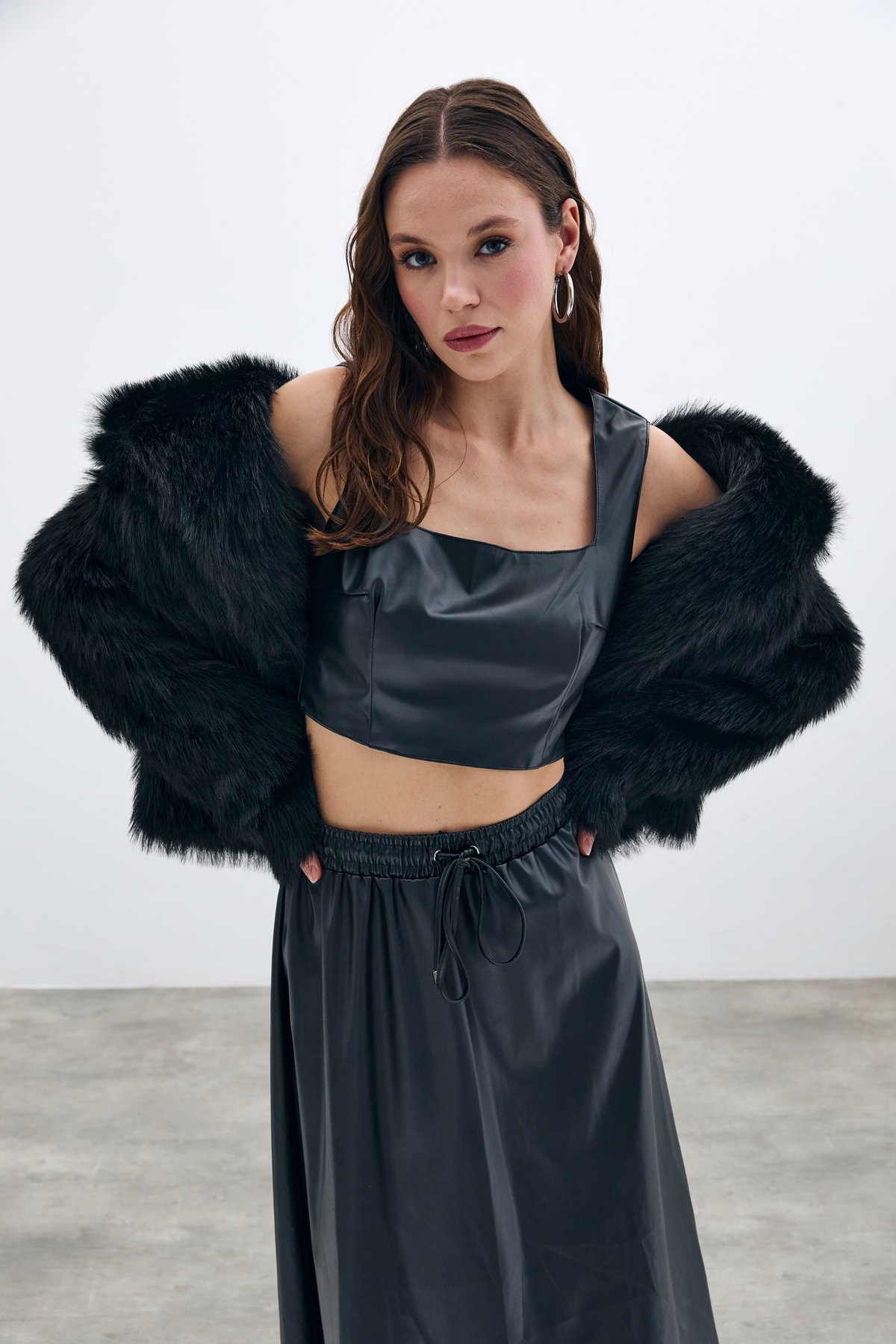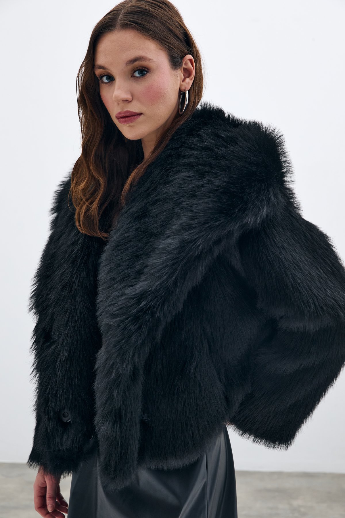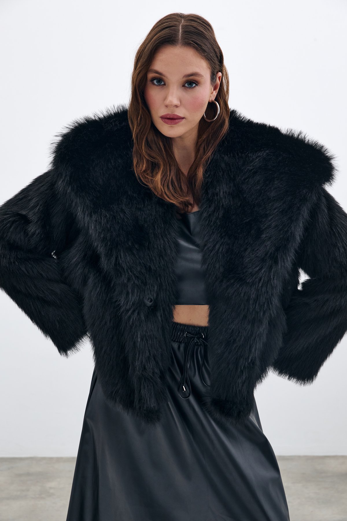 Yakalı Kürk - Siyah (STN140KKA101-5)